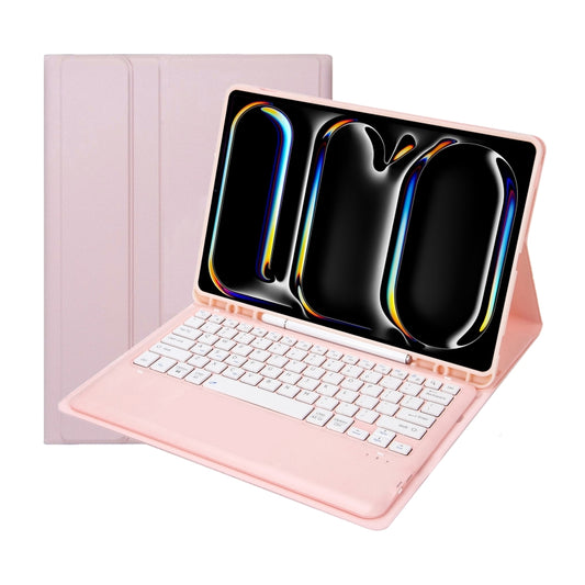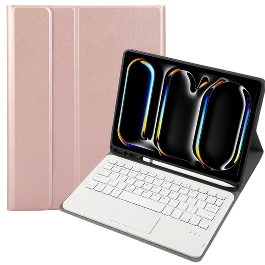 For iPad Pro 11 2024 A13B-AS Lambskin Texture Backlight Bluetooth Touch Keyboard Leather Tablet Case with Pen Slot(Rose Gold)