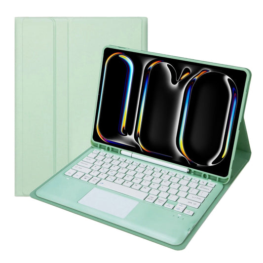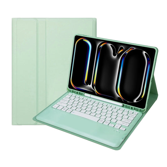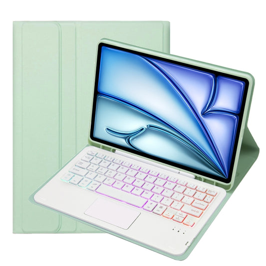 For iPad Air 11 2025 / 2024 / Air 5 10.9 / Air 4 A098B-AS Detachable Ultra-Thin Backlit Bluetooth Touch Keyboard Leather Tablet Case with Pen Slot(Light Green)