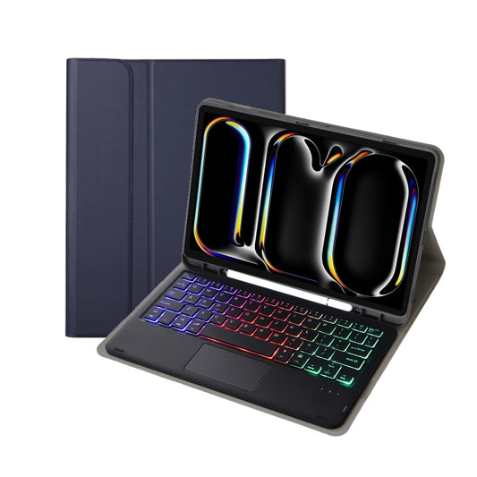 For iPad Pro 11 2024 A13B-AS Lambskin Texture Backlight Bluetooth Touch Keyboard Leather Tablet Case with Pen Slot(Dark Blue)