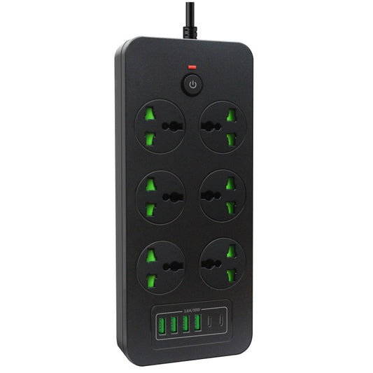 Thunderproof Overload Protection 4USB+2PD+6 Holes Socket, Color: Black UK Plug