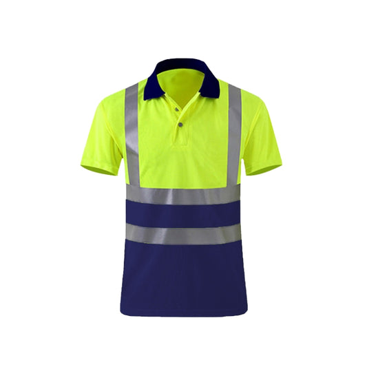Reflective Quick-drying T-shirt Lapel Short-sleeved Safety Work Shirt, Size: XXL(Fluorescent +Navy Blue)