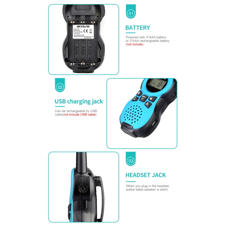 1 Pair RETEVIS RT638 EU Frequency PMR446 16CHS License-free Children Handheld Walkie Talkie(Blue)