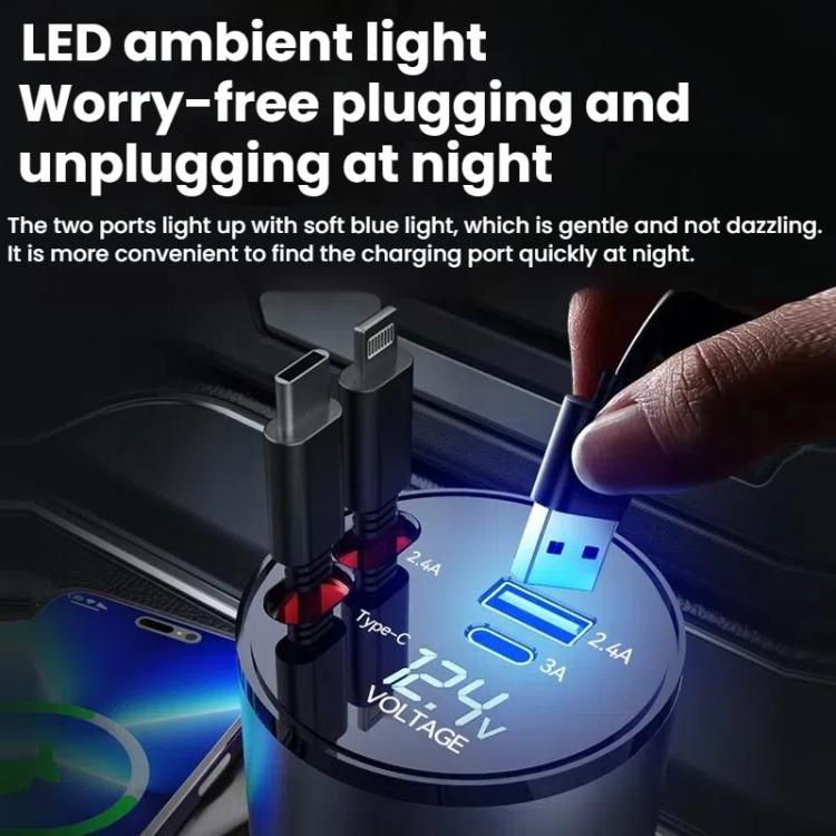100W Metal Car Retractable Cable Cigarette Lighter Charger, Specification: 8 Pin+8 Pin (2.4A)