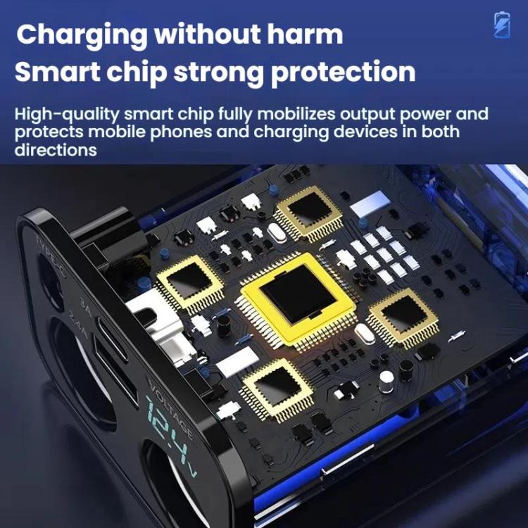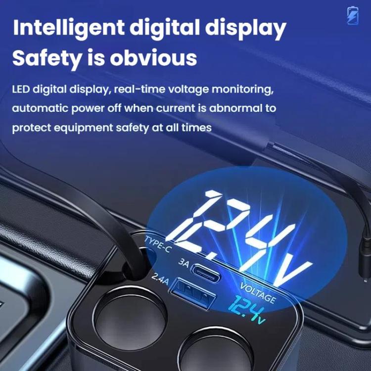 120W 1 To 2 Retractable USB Car Fast Charging Charger With Cigarette Lighter(8 Pin+TYPE-C)