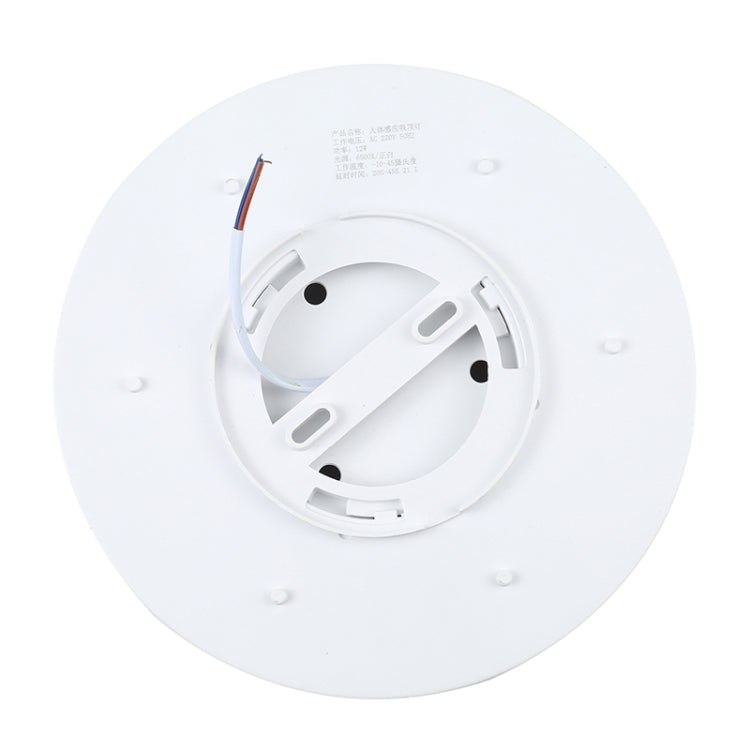 12W 6500K Round Shape Human Body Sensor LED Ceiling Light, AC 220V (White Light)