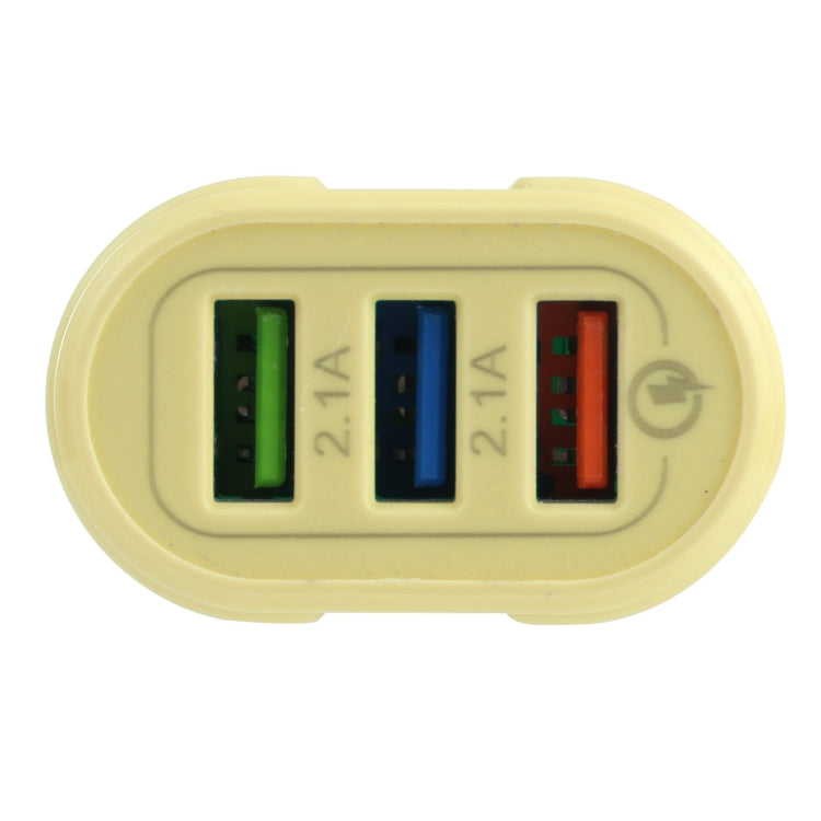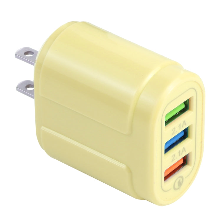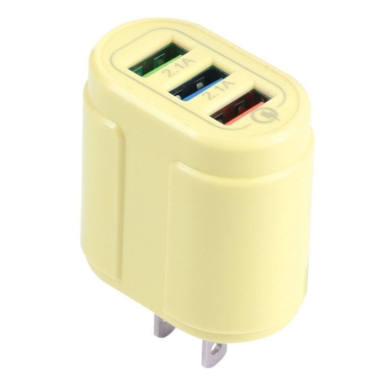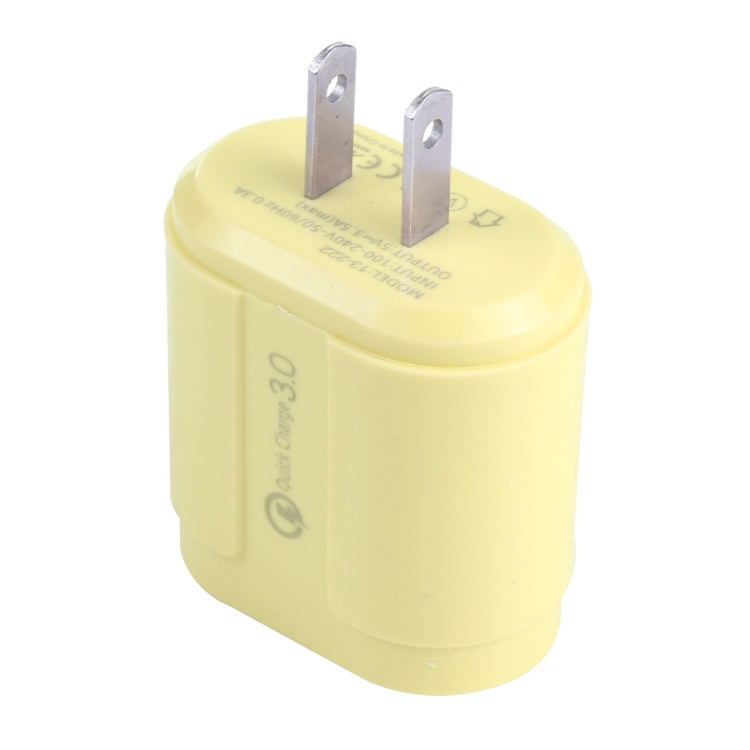 13-222 QC3.0 USB + 2.1A Dual USB Ports Macarons Travel Charger, US Plug(Yellow)