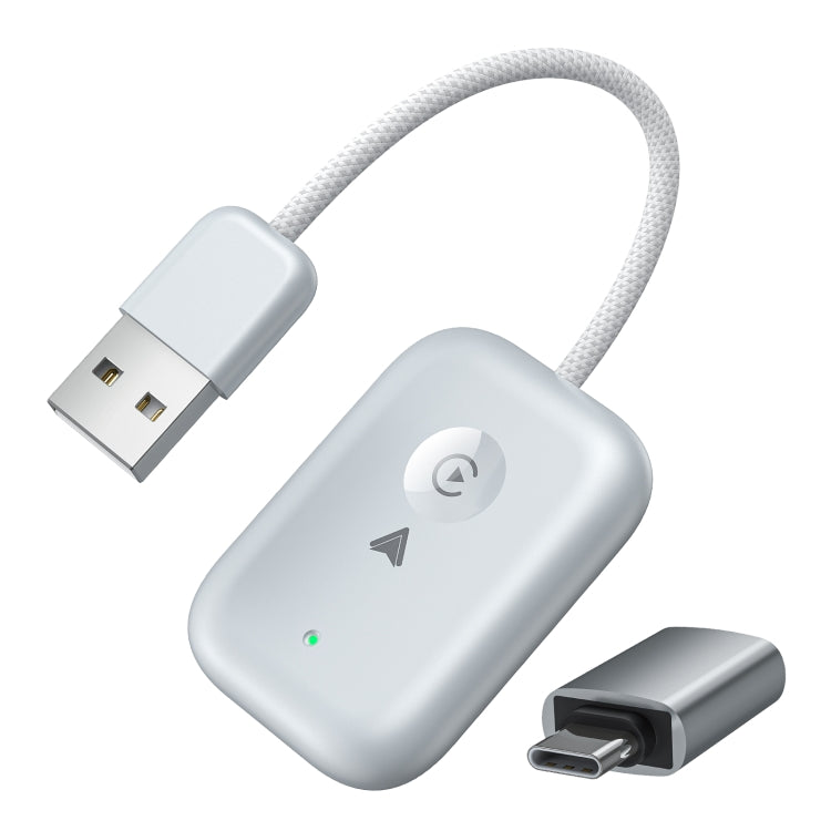 2 in 1 Apple CarPlay / Android Auto USB, Type-C Dual Ports Wired to Wireless CarPlay Adapter(Silver)