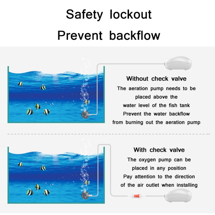 3. The aerator pump can be placed in any position, pay attention to the direction of the air outlet when installing