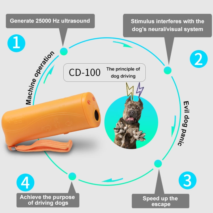 1) This training dog banish dog machine is based on the theory that ultrasonic more that 20KHZ, which is above the upper limit of the human hearing, but within the dog's, this Yellow Flash Light 2) Toy is a combination both sound and light, matching with super white light of LED.