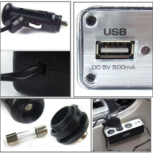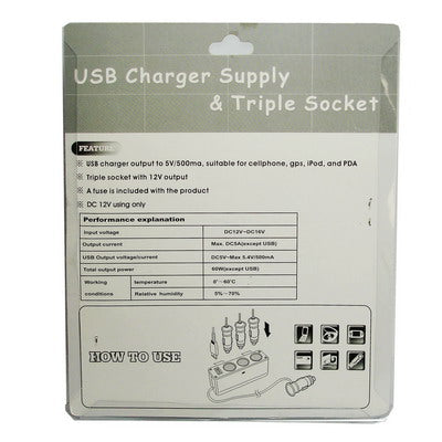 3 Triple Socket 12V/24V Car Cigarette Lighter USB Power(Black)
