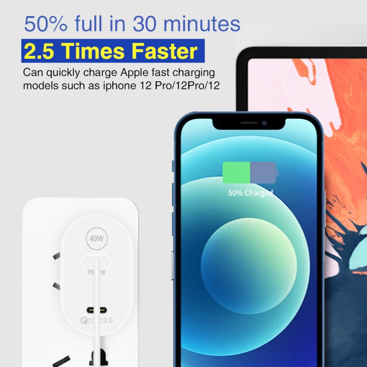 40W Dual Port PD / Type-C Fast Charger with Type-C to 8 Pin Data Cable, EU Plug(Black)