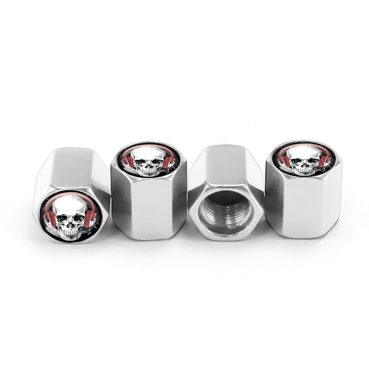 4pcs /Set Headset Skeleton Metal Tire Valve Caps Automobile Universal Modified Valve Covers(Silver)