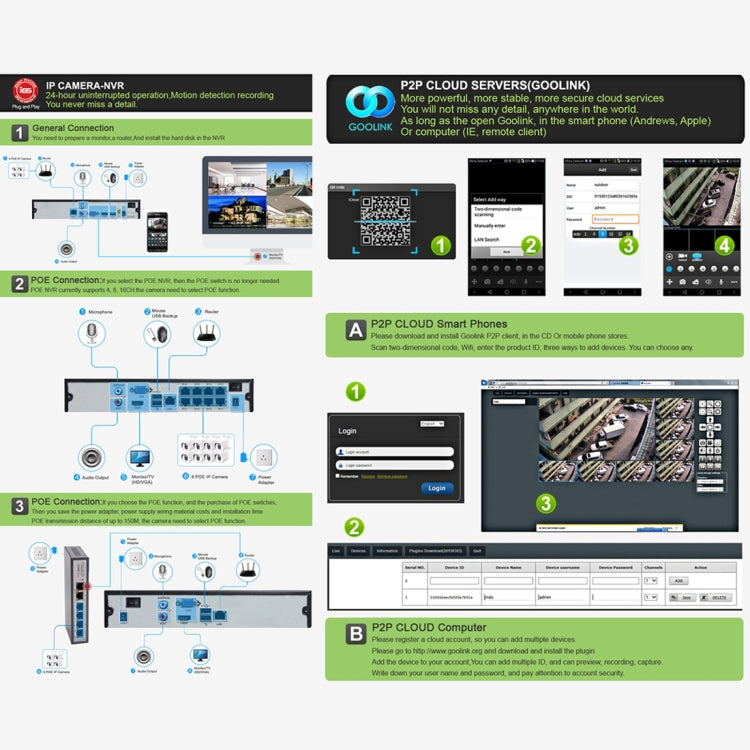 5. Support P2P mobile phone monitoring (compatible Iphone / Android).