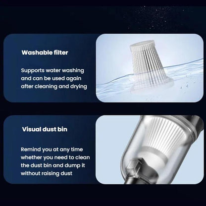 1. Compact & Powerful: Dual-purpose cordless vacuum for home & car use. Ultra-portable design with robust 5500Pa suction (4300Pa at low battery). Effortlessly tackles dust, debris, sand, pet hair, mites, and PM2.5 particles.