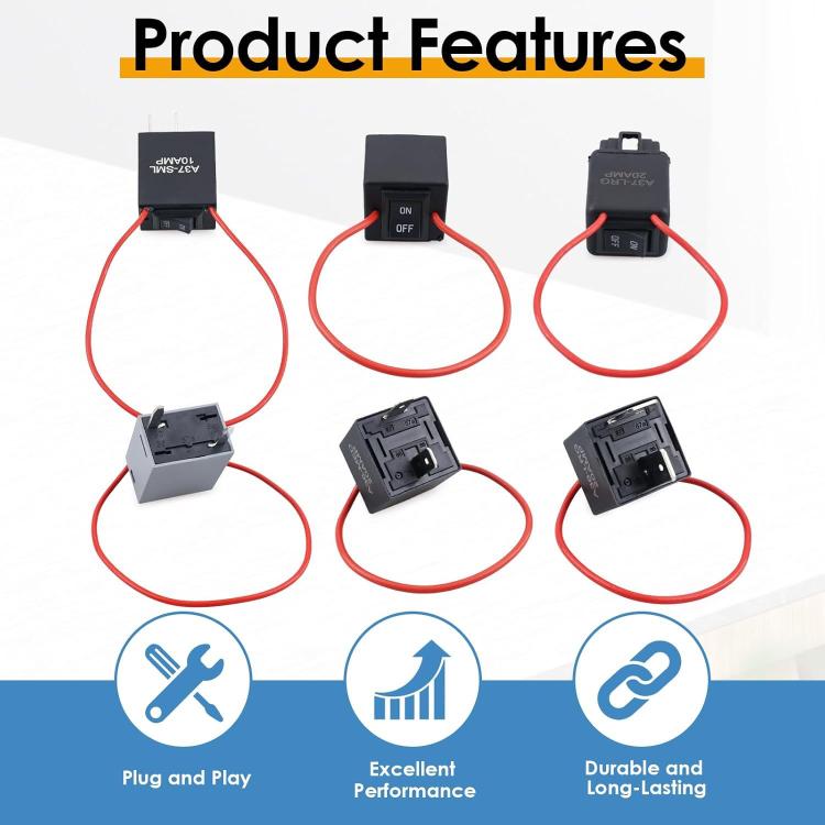 5. Wide Applicability: The relay bypass switch kit is suitable for most fuel pumps, cooling fans, window motors, headlight switches, AC compressors, and other devices using automotive relays.