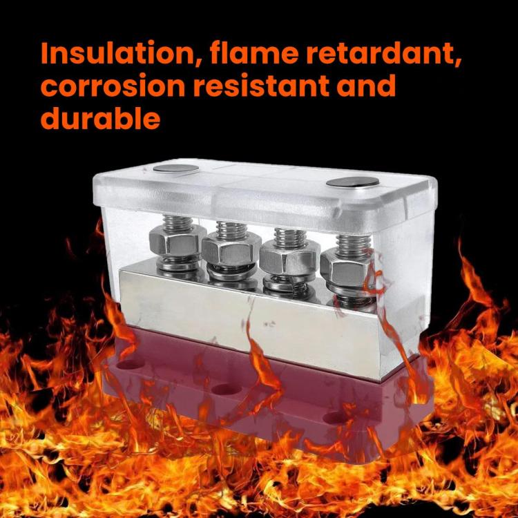 600A RV Yacht Copper Bolt 4 Stud Heavy Duty Busbar Terminal, Color: Black Single