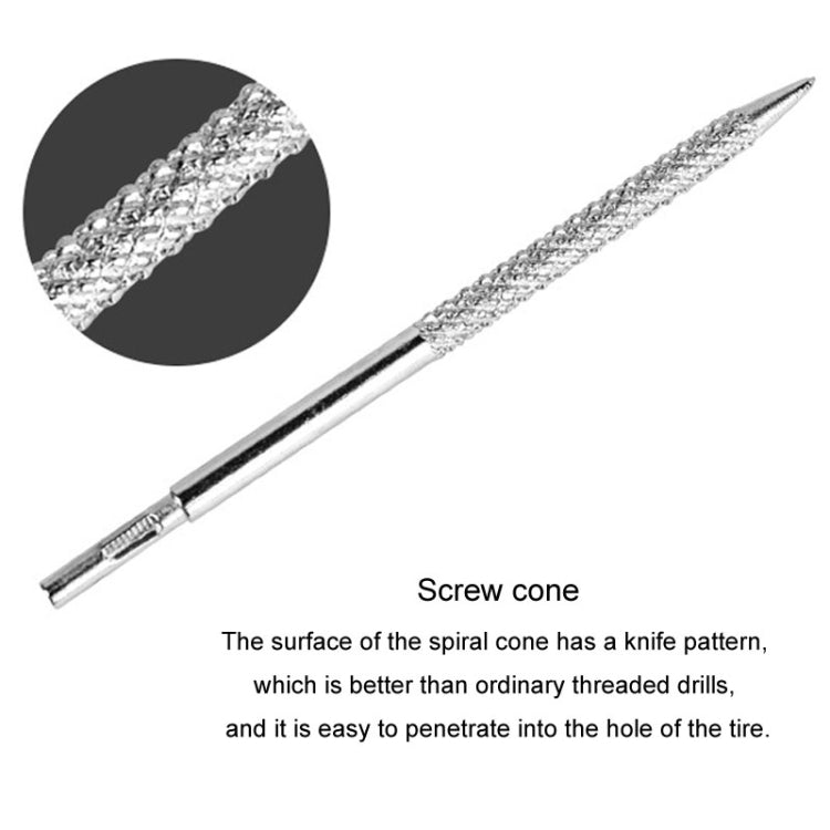 3. Screw cone: surface clanging knife pattern, better than ordinary threaded drill cleaning effect, easy to penetrate the tire hole