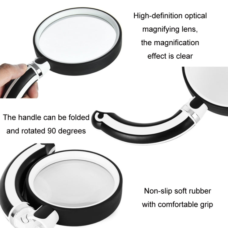 90mm Rubber Handle Folding Rotating Hand Magnifying Glass