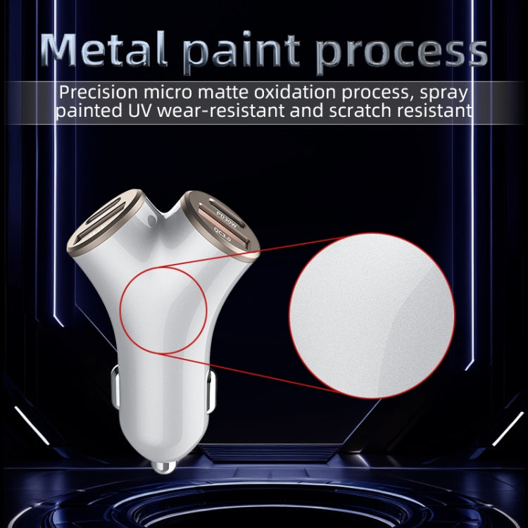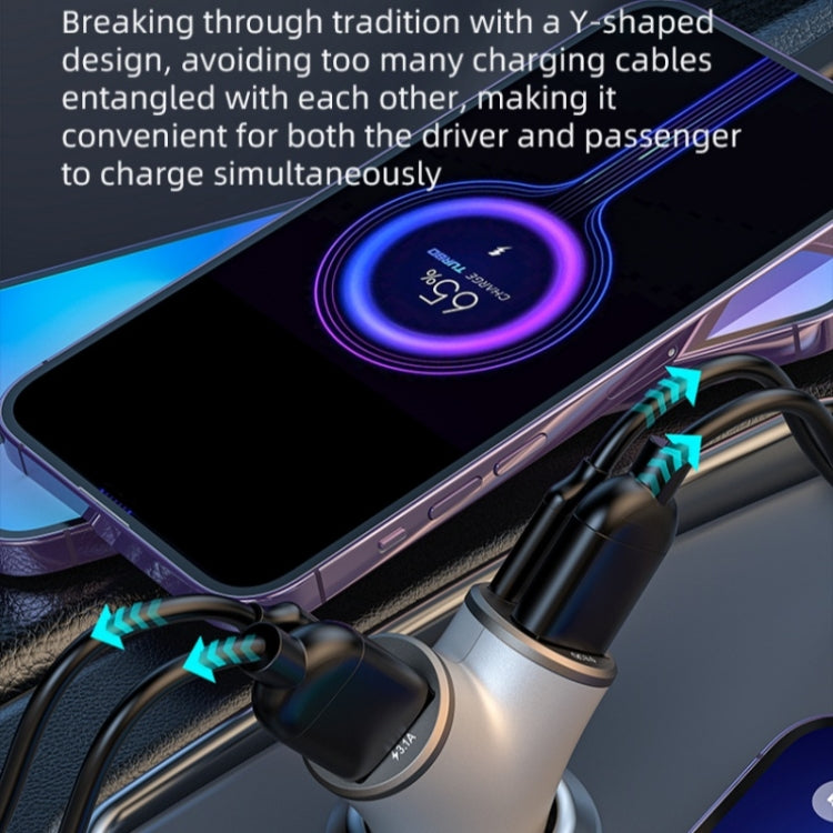 A2 2 USB + 2 Type-C Phone Fast Charging Power Adapter 78W Y-Shaped Car Charger(Silver)