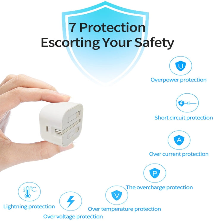 A2344 20W PD 3.0 Type-C / USB-C Folding Travel Charger + USB-C / Type-C to 8 Pin Fast Charging Data Cable Set, UK Plug, Length: 1m