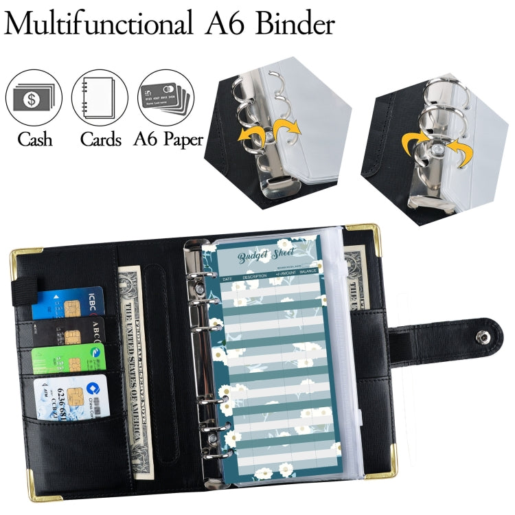 A6 PU Leather Color Printing Notebook Zipper Bag Loose-leaf Budget Binder(Chain-Black)