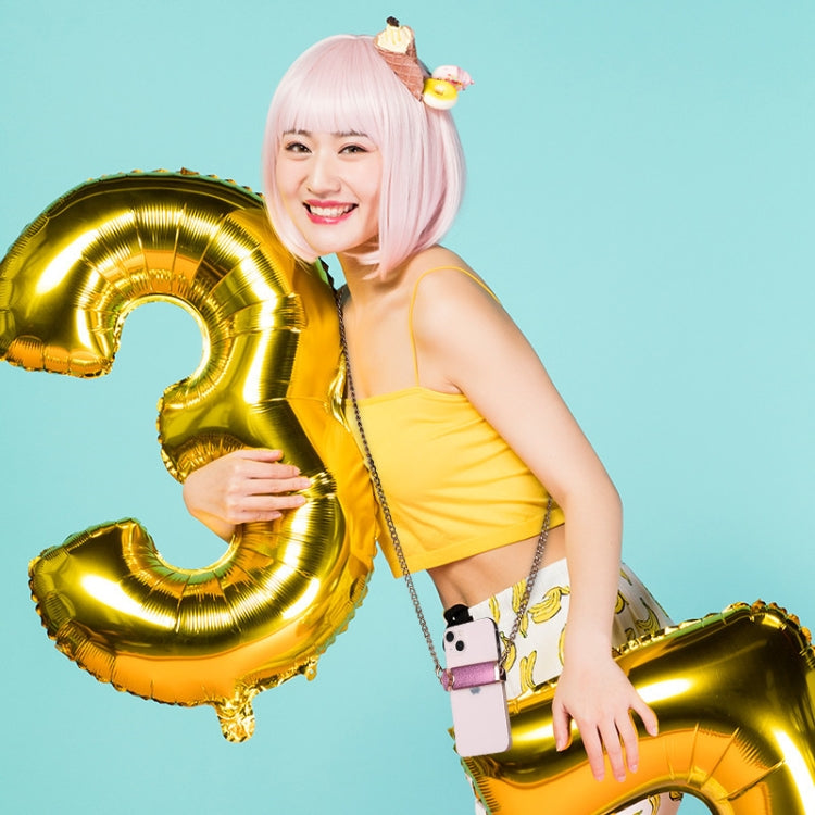 Adjustable Crossbody Chain Metal Phone Holder Lanyard Clip(Gold Blue)