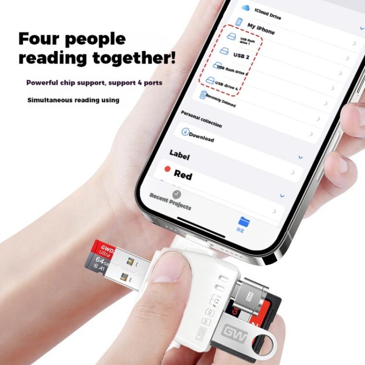 AJ-701 USB-A To USB-C / Type-C + Micro USB + 8 Pin 7-In-1 Universal Card Reader(White)