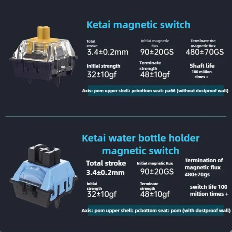 9. Hot plug: support, compatible with TTC Magneto, Gateron Magnetic White, Magnetic Jade and other N-pole downward magnetic axes
