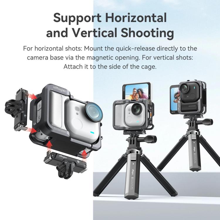 3. Seamless Switch Between Front & Selfie Modes: The cage's quick-release mount features a non-polar magnetic design. When mounted for portrait shooting, simply rotate the camera 180 degrees without removing the base plate to effortlessly switch between front-facing and selfie modes.