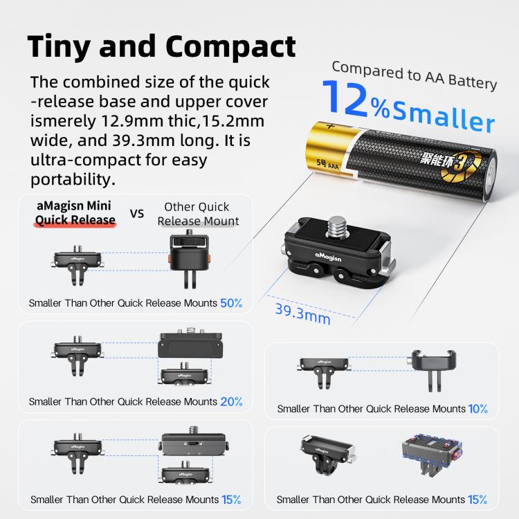aMagisn Mini Quick Release Mount for Sports Cameras, Spec: 2-claw Base+1/4 Inch Cover