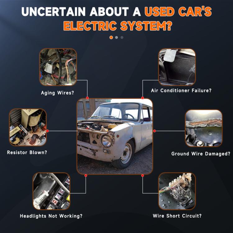 11. Continuity Test: When the tool is in resistive mode, the probe tip is used to connect to the body ground wire or auxiliary ground wire, and conductivity tests can be performed on the wires and components that connect or disconnect the vehicle's electrical system.