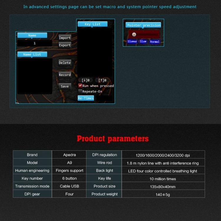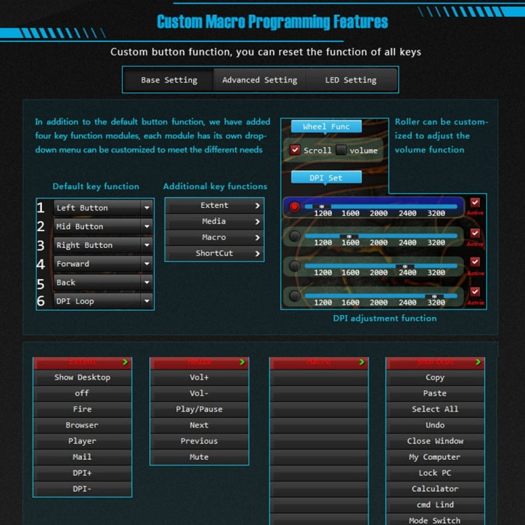 4. Adjustable DPI Switch: 1200-1600-2000-2400-3200 DPI.