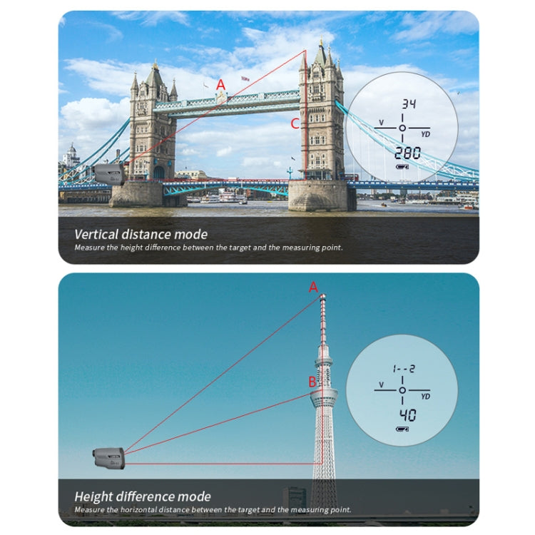15. The operation is simple and convenient, quickly obtain the straight-line distance, horizontal distance, vertical distance, tilt angle, golf mode, height difference between two points