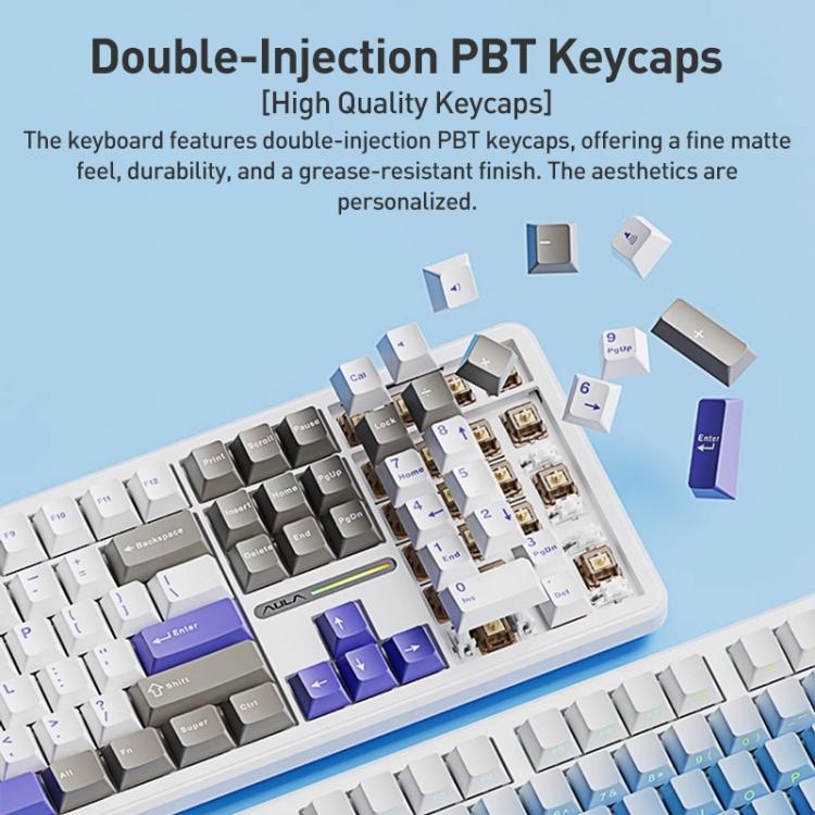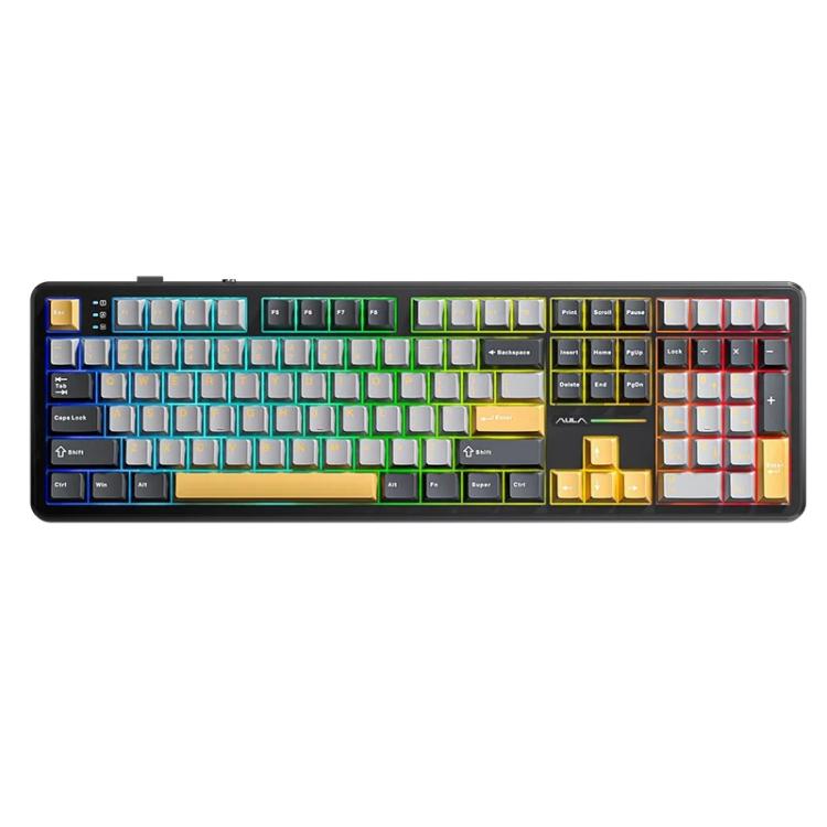 AULA F108 108 Keys Wired/2.4G/Bluetooth Three Model Customizable RGB Gaming Mechanical Keyboard(Dark Grey + Light Grey + Yellow Caramel Latte Axis)