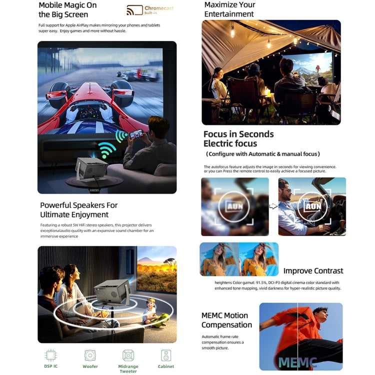 AUN A003 Pro 1920 x 1080P 350 Lumens Portable Home Theater LED HD Digital Projector, US Plug(Grey)