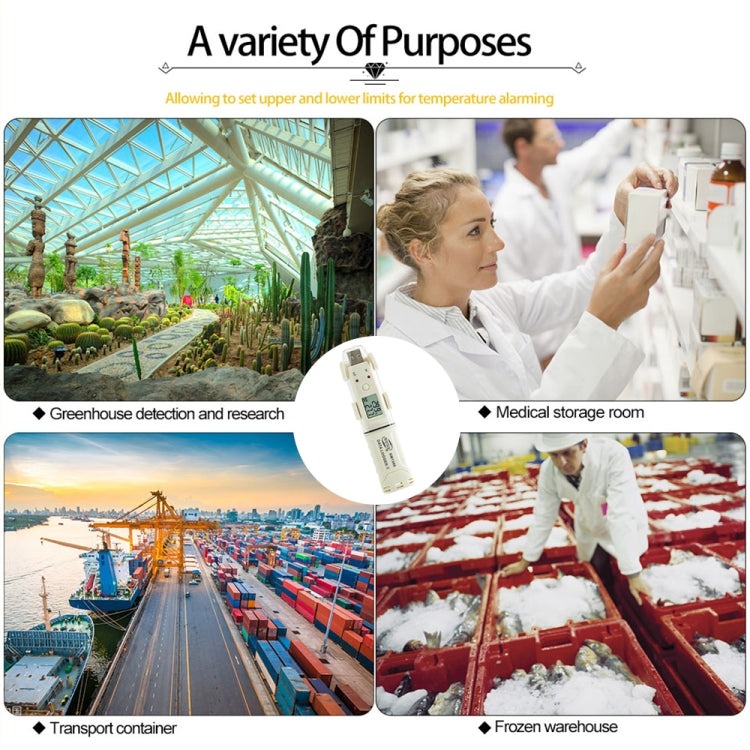 2. Data Transfer and programming: directly connect the device with PC USB interface to transfer data with PC and to set up sampling period, storage interval and alarming.