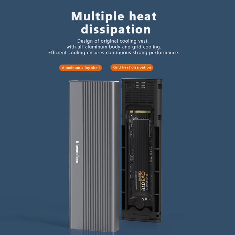 Blueendless 2818SN M.2 Nvme / Sata Dual-protocol Mobile Hard Disk Box with Type-C to USB-A Cable