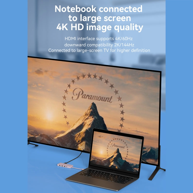 4. Seven-in-one interface: HDMI, USB-C, USB-A x 2, PD, SD, TF