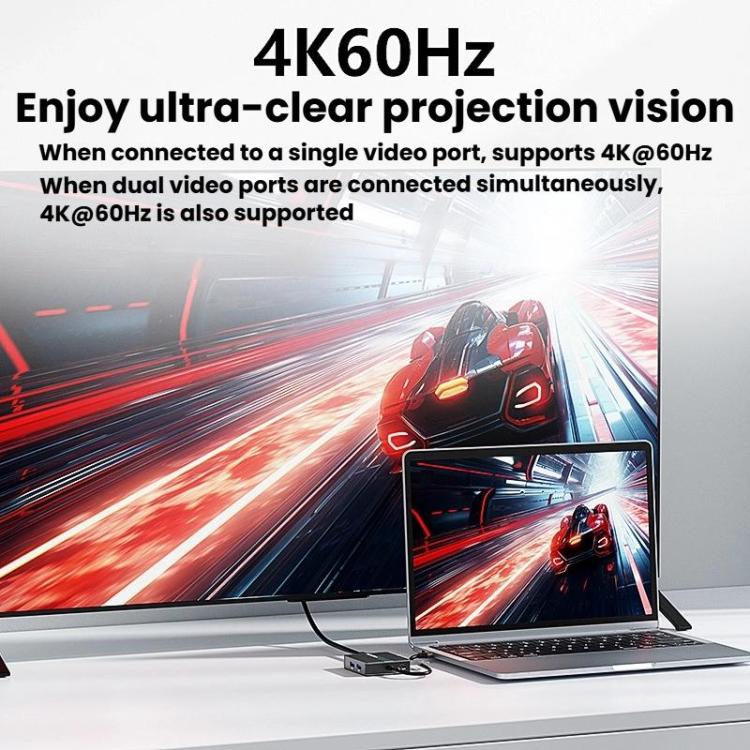 5. Enjoy ultra-clear screen projection vision. When connected to a single video port, it supports 4K 60Hz. When connected to two video ports simultaneously, it also supports 4K 60Hz