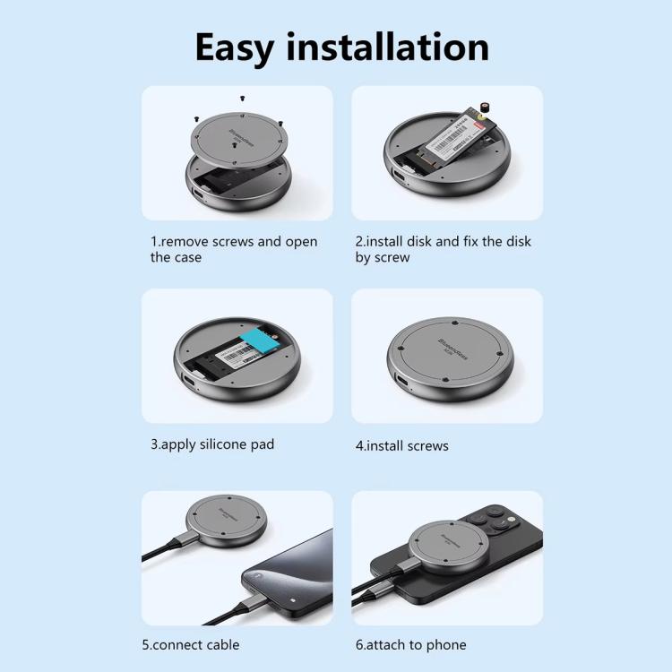 Blueendless M3NPD M.2 NVMe 2230/2242 Magnetic Phone Hard Disk Box with PD Charging Port