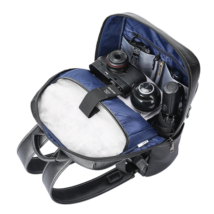 Bopai 61-121671A Top-Layer Cowhide Large-Capacity Casual Business Laptop Backpack(Black)