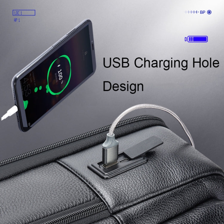 Bopai 61-70111 Cowhide Multi-compartment Waterproof Anti-theft Backpack with USB Charging Hole(Black)
