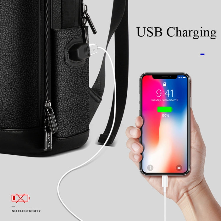 Bopai 851-036611 Large Capacity Top-grain leather Business Breathable Man Backpack, Size: 30x12x43cm(Black)