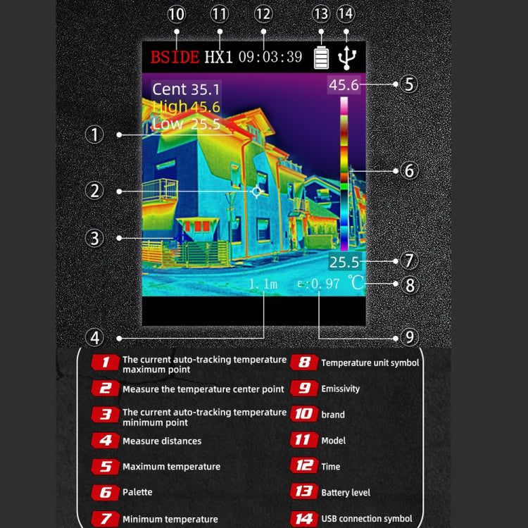 BSIDE HX1 Handheld Thermal Imaging Device Power Non-Contact Thermometer