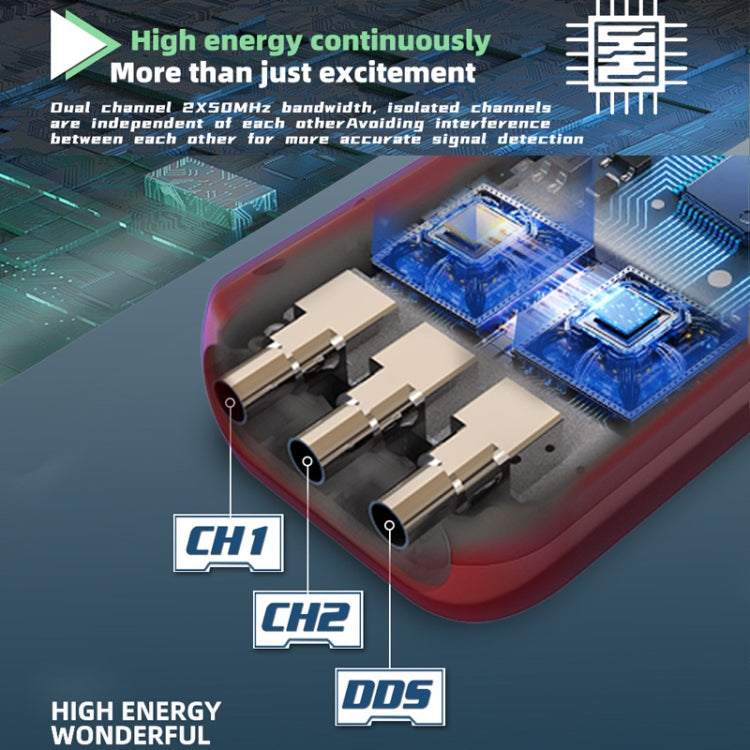 BSIDE O9 Digital Handheld Dual Channel 50MHz Oscilloscope Signal Source Multimeter, Spec: With Single Oscilloscope Probe (Red)