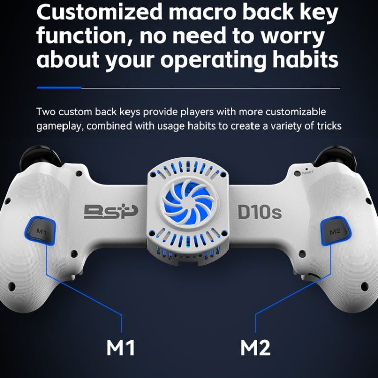 2. D10S with semiconductor cooling fan, 16W power semiconductor cooling, back fan fast cooling, double efficiency to the phone precise cooling, effectively solve the long time game brought about by the mobile phone hot problem; cooling pulls the full sense of the atmosphere, the back of the handle is designed with a combination of seven blades fan, built-in ambient light.