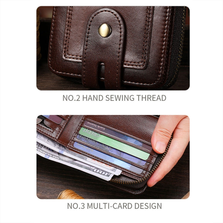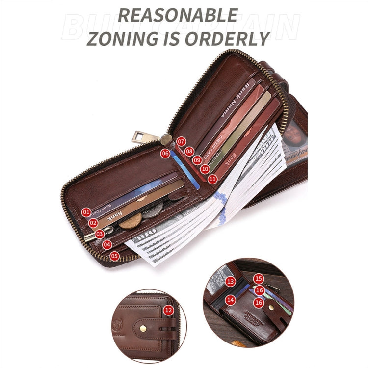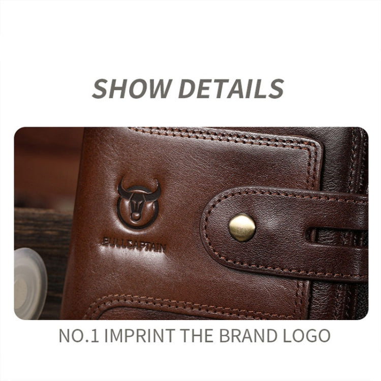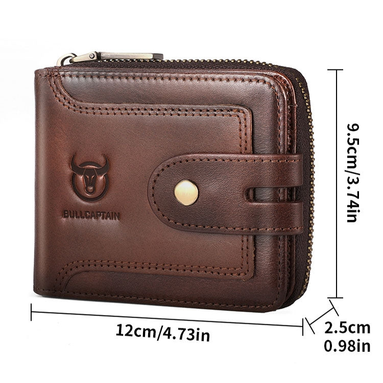 BULL CAPTAIN 232 RFID Anti-Theft Cowhide Men Zipper Wallet Vintage Business Card Holder(Black)