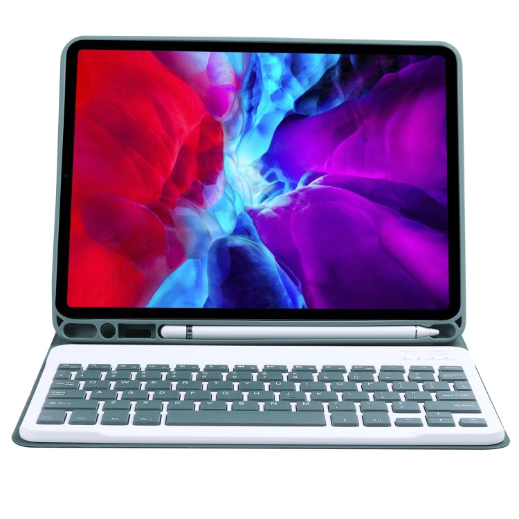 C-11B Detachable Candy Color Bluetooth Keyboard Leather Tablet Case with Pen Slot & Holder for iPad Pro 11 2022 / 2021 / Air 5 / Air 4 (Dark Green)
