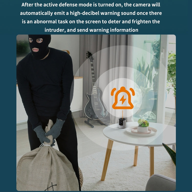 4. Alarm defense to scare away intruders: After the active defense mode is turned on, once a moving person appears on the screen, the camera will automatically emit a high-decibel alarm sound to deter and scare off intruders, and push an alarm message.