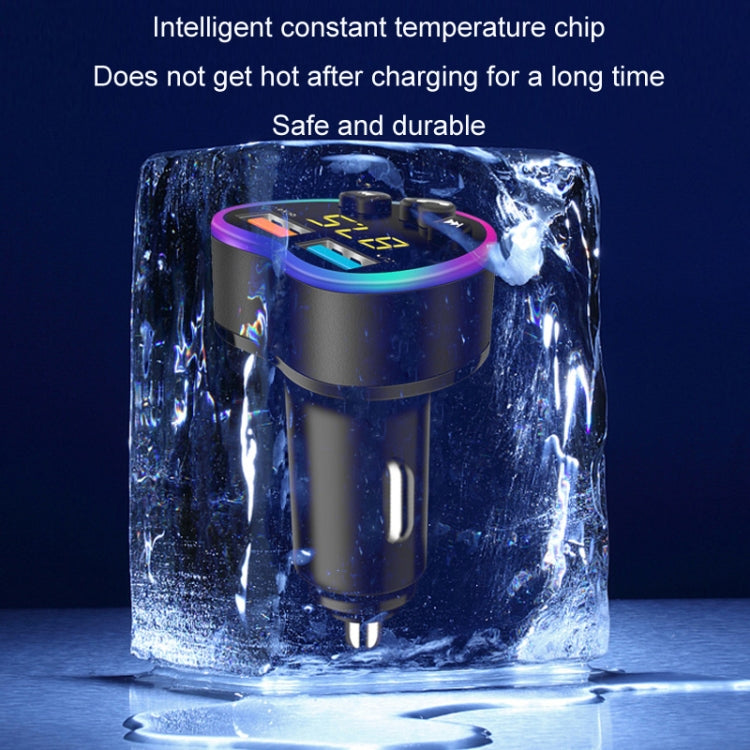 Car MP3 Bluetooth Player FM Transmitter Multifunctional Car Charger, Model: 4.8A Black
